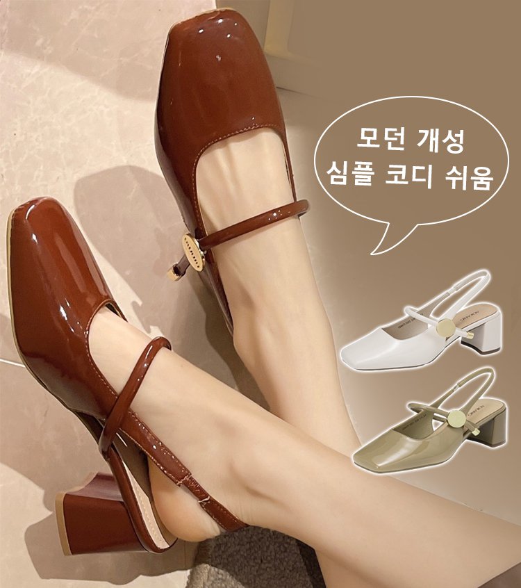 프렌치 스퀘어 토우 펌프스 힐