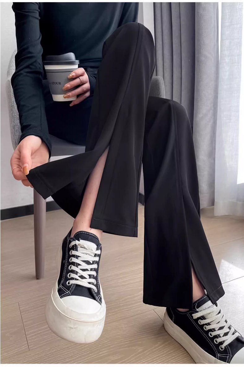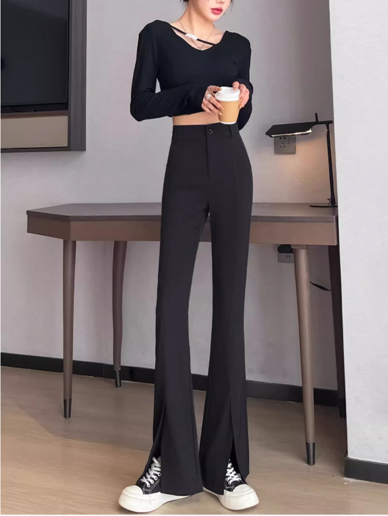 여성용 블랙 트임 부츠컷 정장 바지
